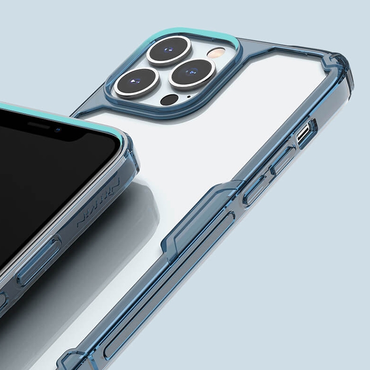 Чехол Nillkin Nature Pro для iPhone 14 Pro Max, прозрачный/синяя рамка