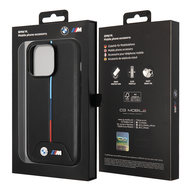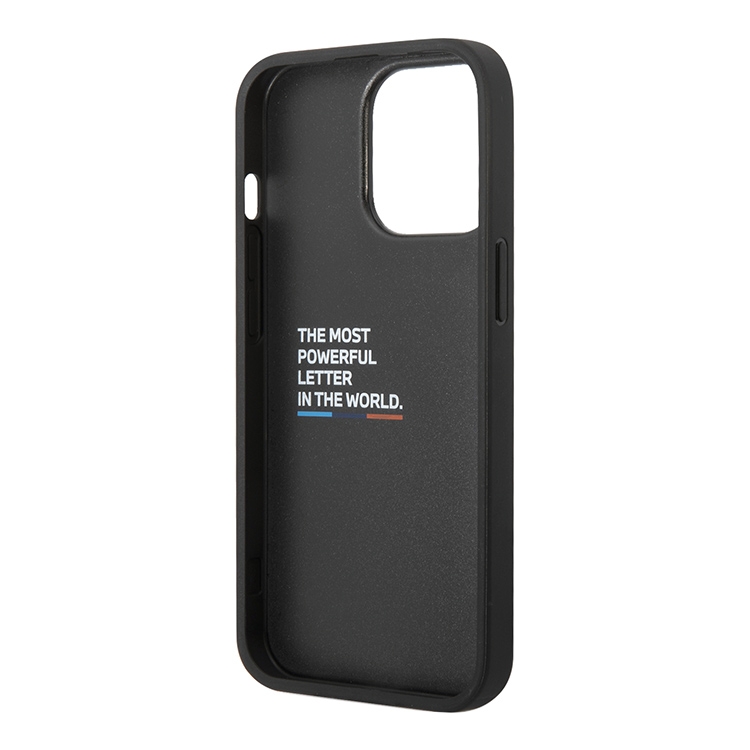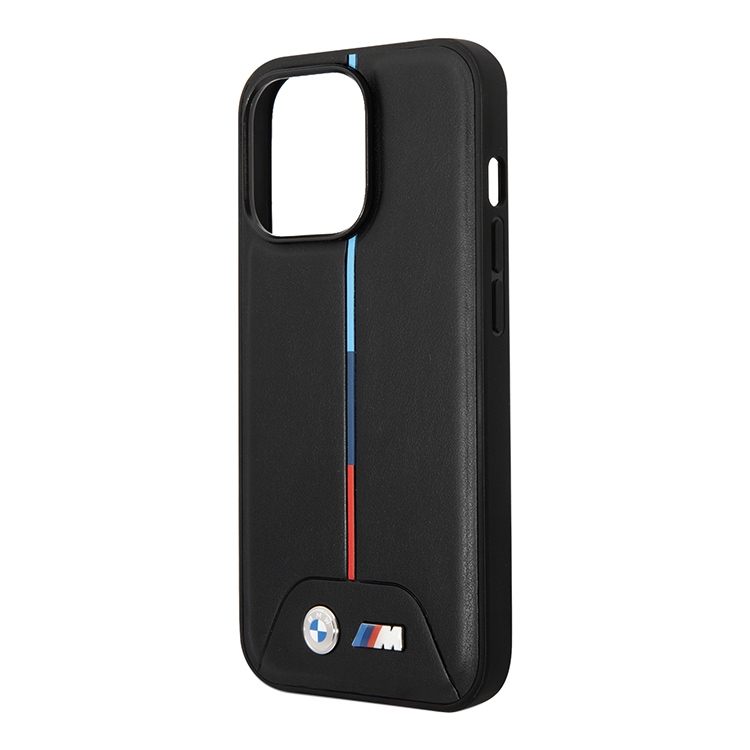 Чехол BMW PU Quilted Hot stamp tricolor Hard для iPhone 14 Pro, черный