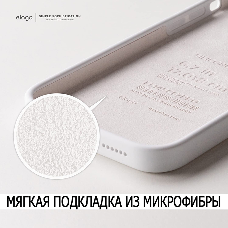 Выполнен в удобной форме накладки из легкого пластика, покрытого "жидким" силиконом с эффектом касания Soft-touch: не скользит, приятный на ощупь. Внутренняя поверхность имеет отделку из микрофибры. Боковые клавиши оснащены заглушками, интегрированными в чехол - это защищает их от попадания пыли или влаги. Высокий бортик вокруг камеры оберегает объектив от механических дефектов. Аксессуар плотно облегает корпус телефона, его конструкция отлично защищает от разнообразных повреждений, которые могут быть получены в процессе использования. Не влияет на функцию беспроводной зарядки и NFC.