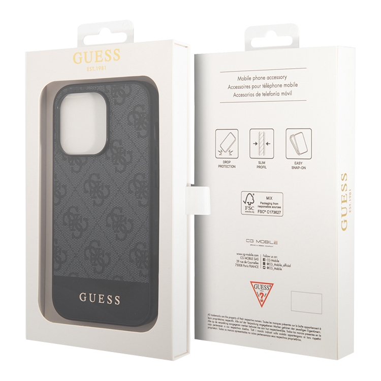 Чехол Guess 4G Stripe Metal logo Hard для iPhone 14 Pro, серый