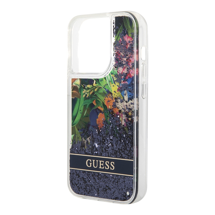 Чехол Guess Liquid glitter Flower Hard для iPhone 14 Pro, синий
