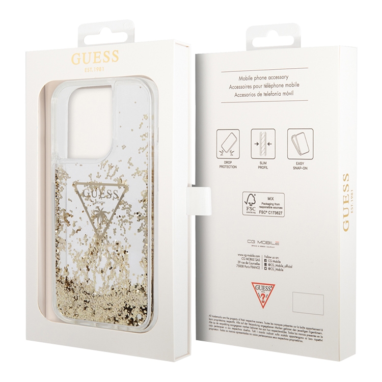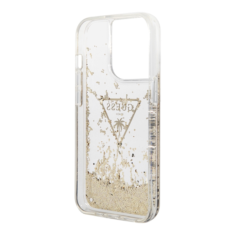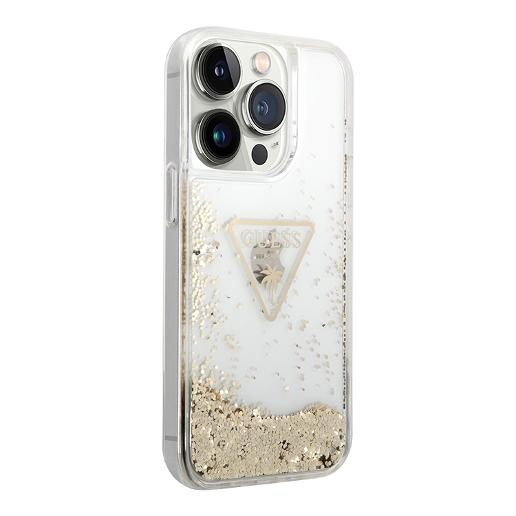Чехол Guess Liquid glitter Triangle logo Hard для iPhone 14 Pro, прозрачный