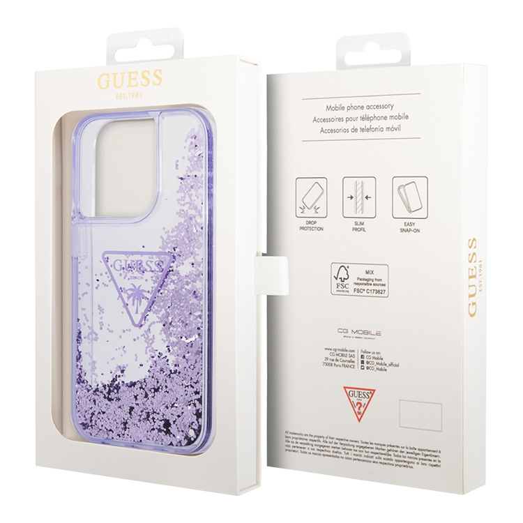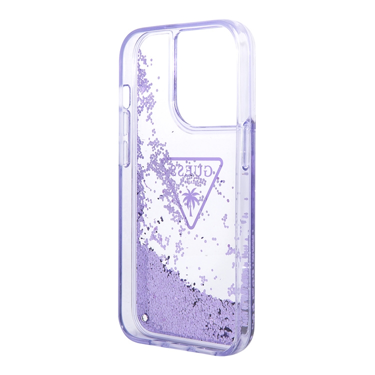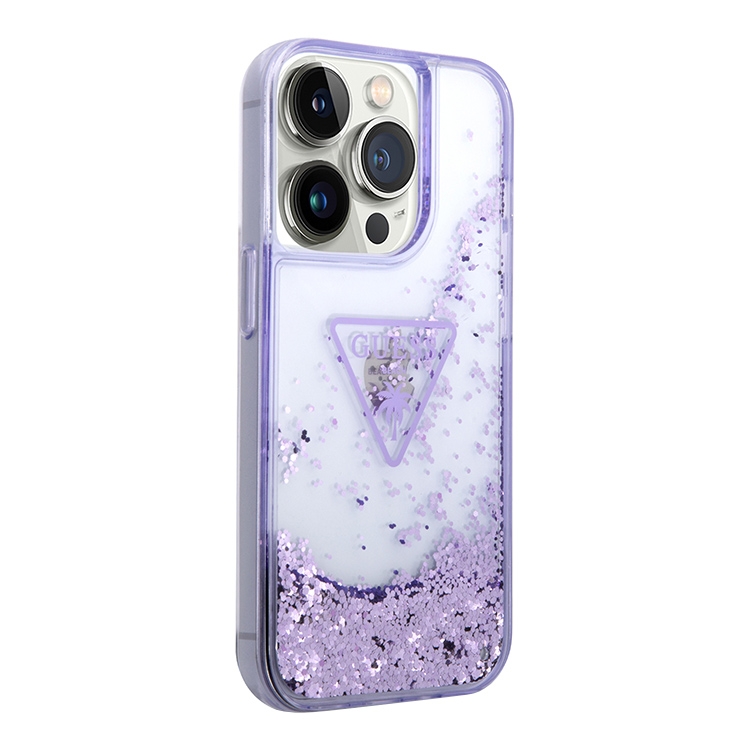 Чехол Guess Liquid glitter Triangle logo Hard Translucent для iPhone 14 Pro, фиолетовый
