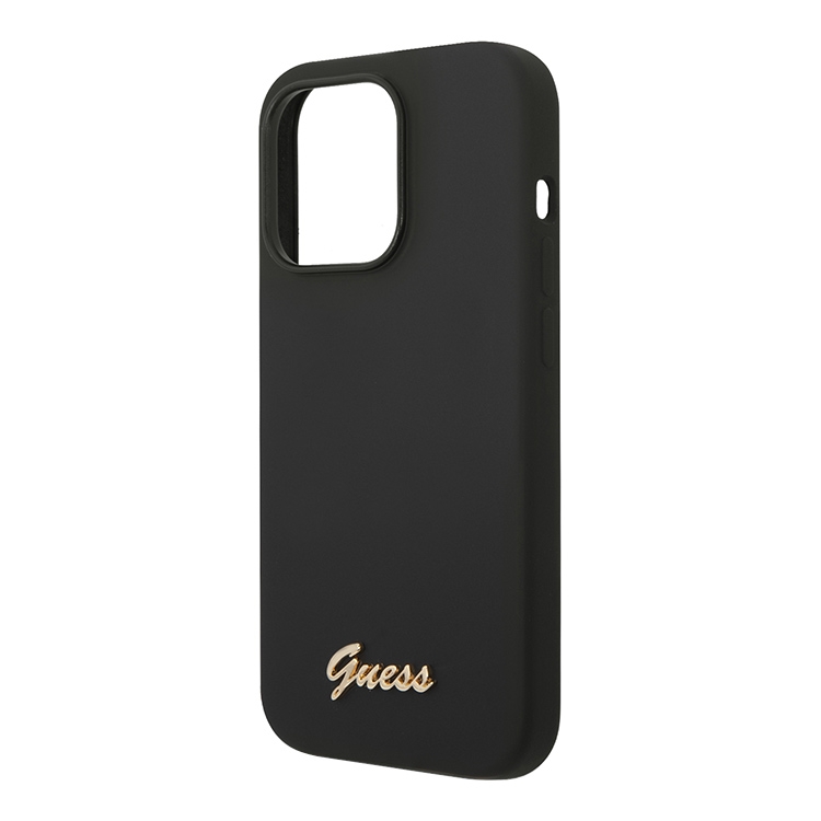 Чехол Guess Liquid Silicone Gold Metal logo для iPhone 14 Pro, черный