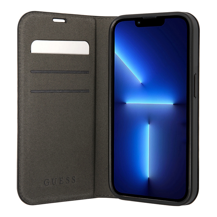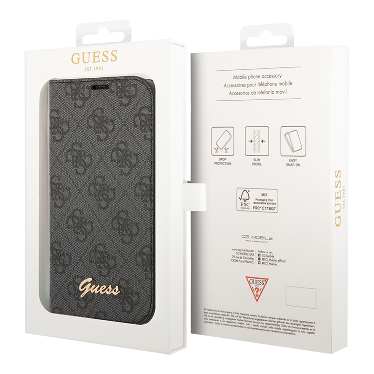 Чехол Guess PU 4G Script metal logo Booktype для iPhone 14 Pro, черный