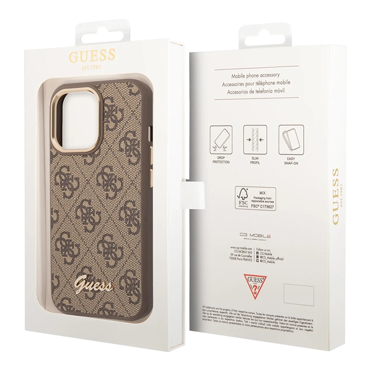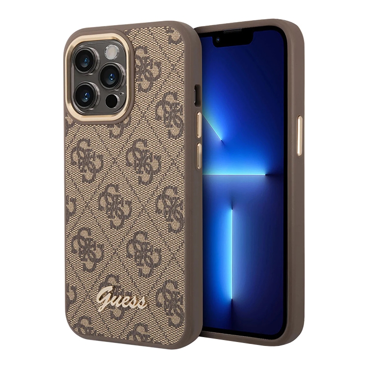 Чехол Guess PU 4G w Script metal logo Hard для iPhone 14 Pro, коричневый (Magsafe)