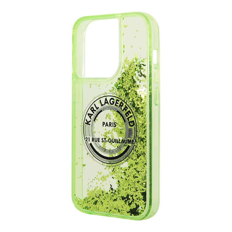 Чехол Lagerfeld Liquid glitter RSG logo Hard для iPhone 14 Pro, зеленый