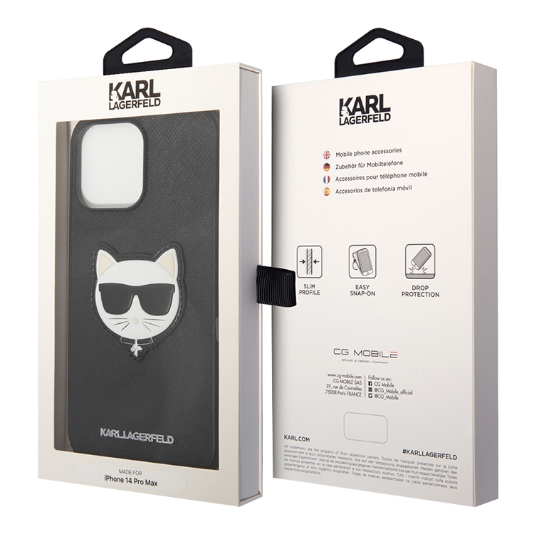Чехол Lagerfeld PU Saffiano Choupette head Patch Hard для iPhone 14 Pro, черный