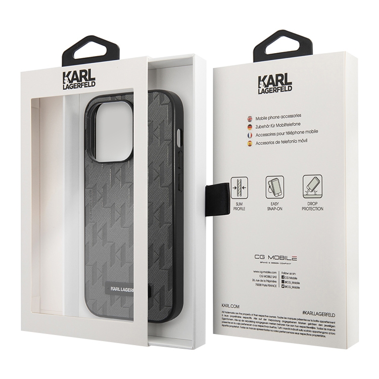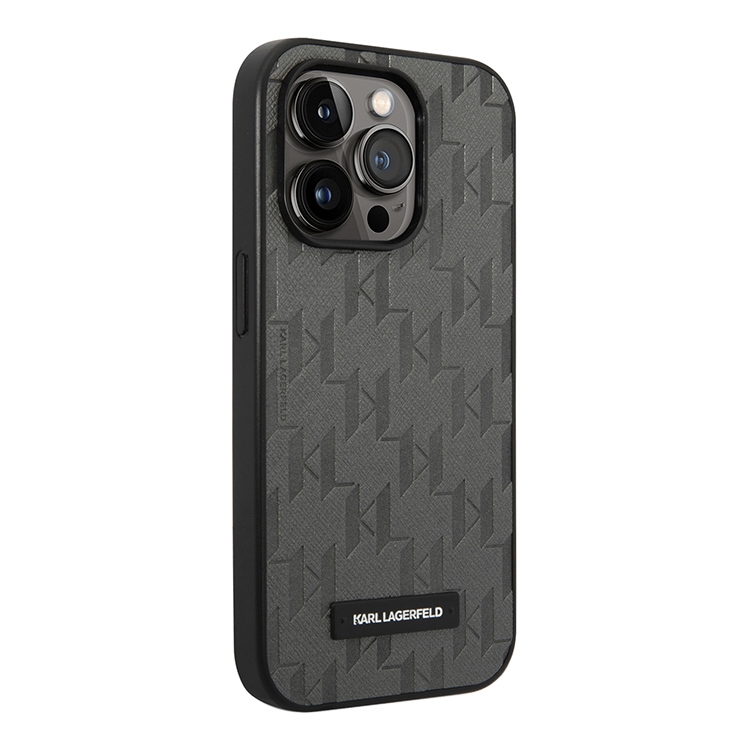 Karl Lagerfeld чехол PU Saffiano Monogram w Metal logo Hard для iPhone 14 Pro, серый