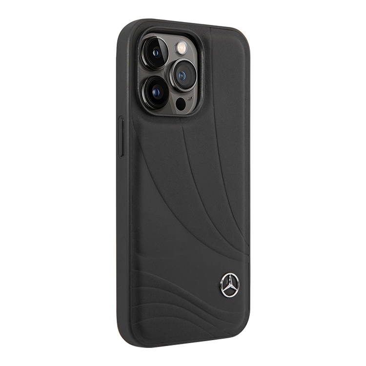 Кожаный чехол Mercedes Leather Wave III Hard для iPhone 14 Pro, черный