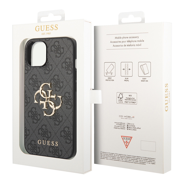 Чехол Guess 4G Big metal logo Hard для iPhone 14, серый