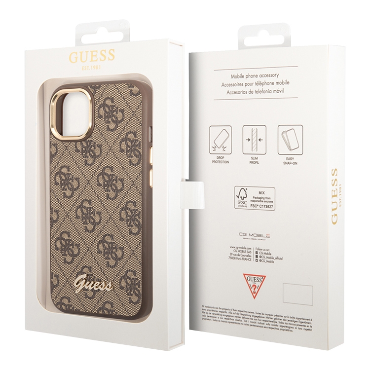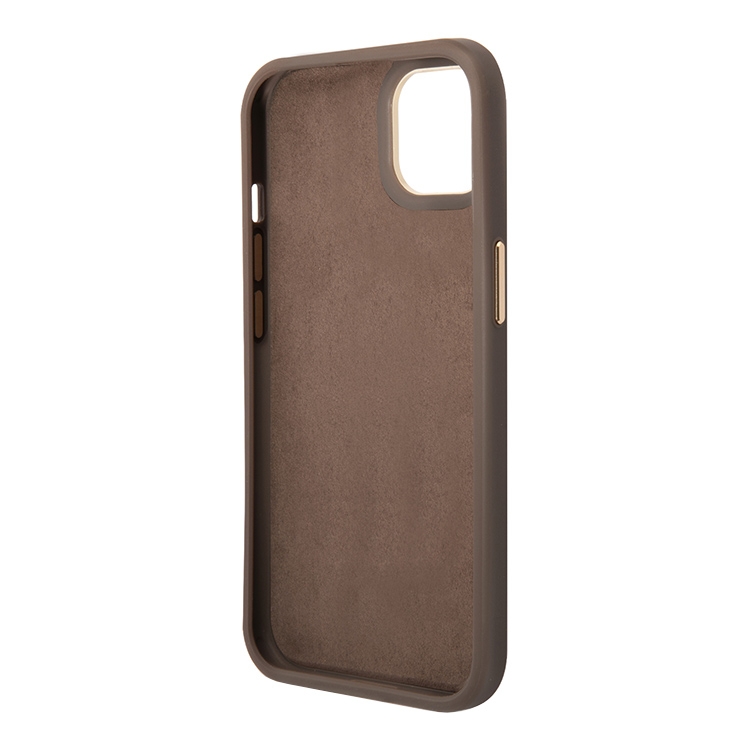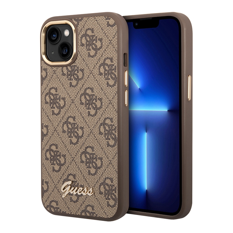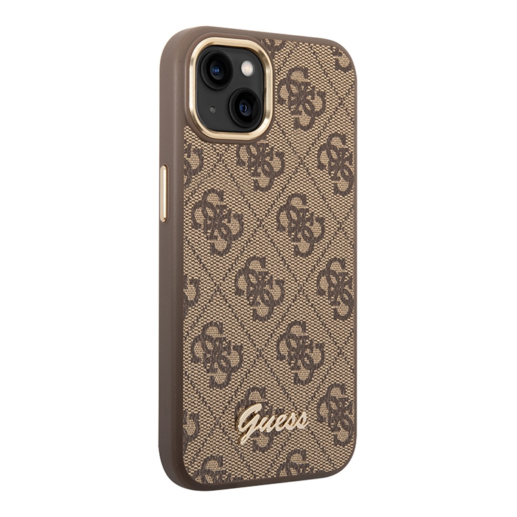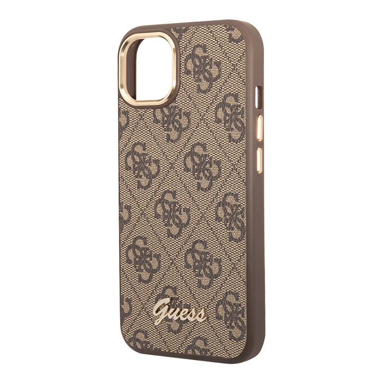 Чехол Guess PU 4G Script metal logo Hard для iPhone 14, коричневый