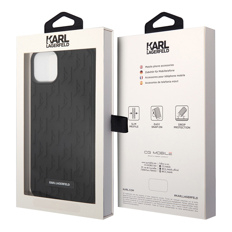 Чехол Lagerfeld 3D Rubber Monogram w Metal logo Hard для iPhone 14, черный