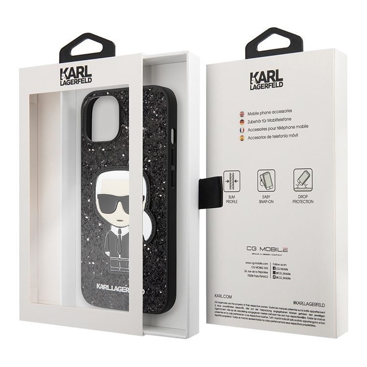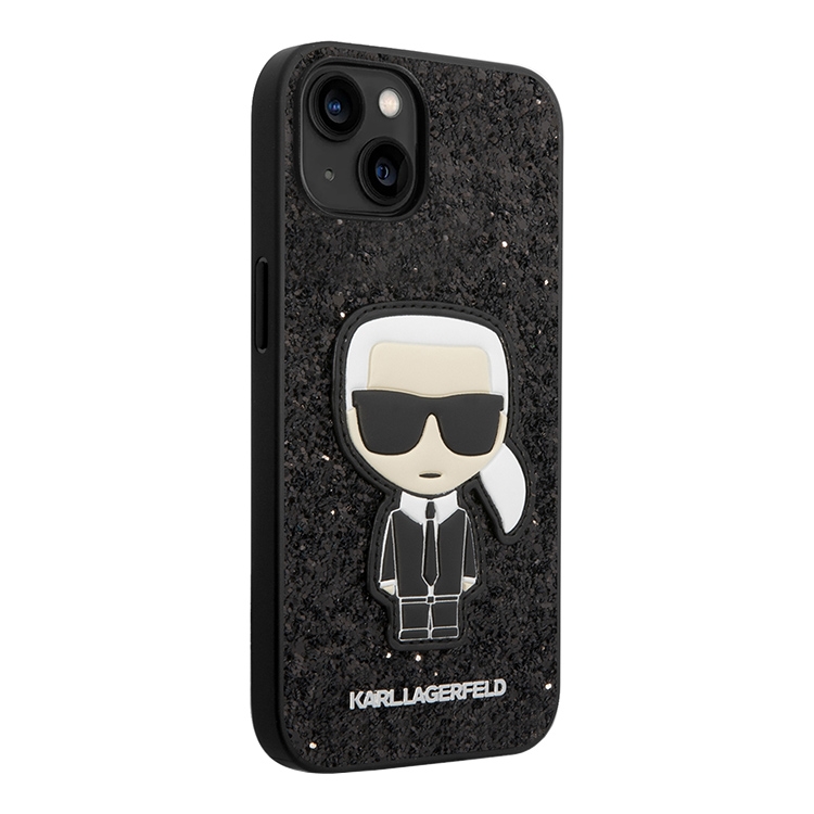 Чехол Lagerfeld Glitter flakes Ikonik patch w Metal logo Hard для iPhone 14, черный