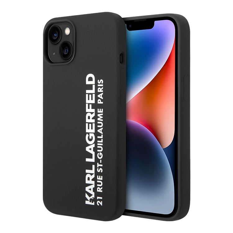 Чехол Lagerfeld Liquid silicone Elongated RSG logo Hard для iPhone 14, черный