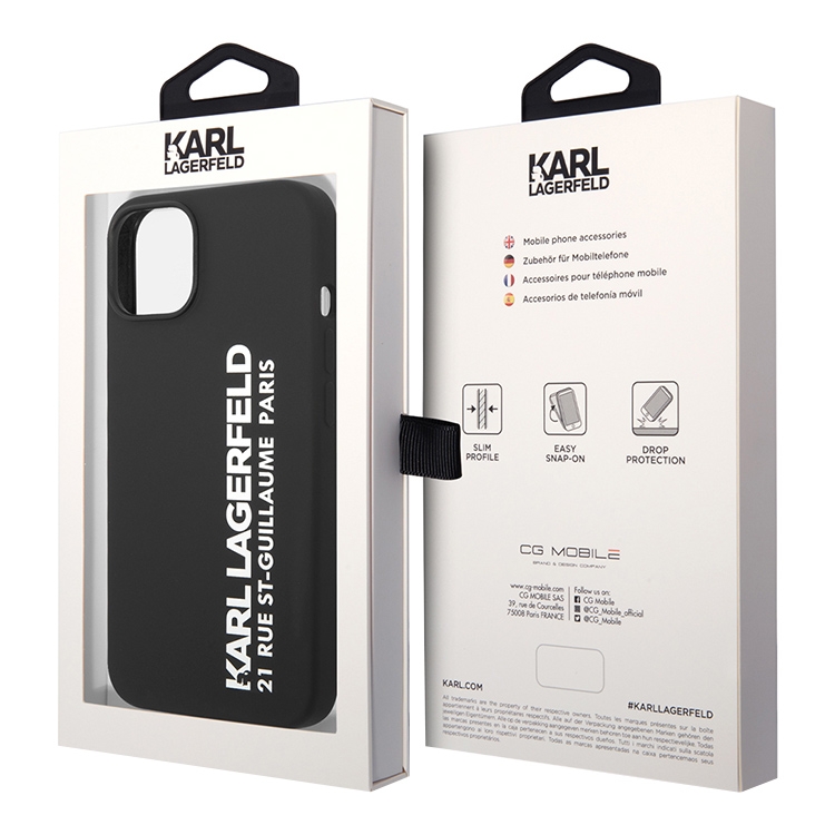 Стильный чехол Karl Lagerfeld выполнен в удобной форме накладки. Шелковистая поверхность корпуса из "жидкого силикона", с покрытием soft touch, приятна на ощупь, не скользит в руке. Внутренняя подкладка - из микрофибры, защищает смартфон от царапин. Накладка идеально повторяет контуры айфона, разъемы и кнопки остаются в свободном доступе. Не препятствует передаче сигналов NFC. В первой букве логотипа на чехле и упаковке запечатлен профиль дизайнера.