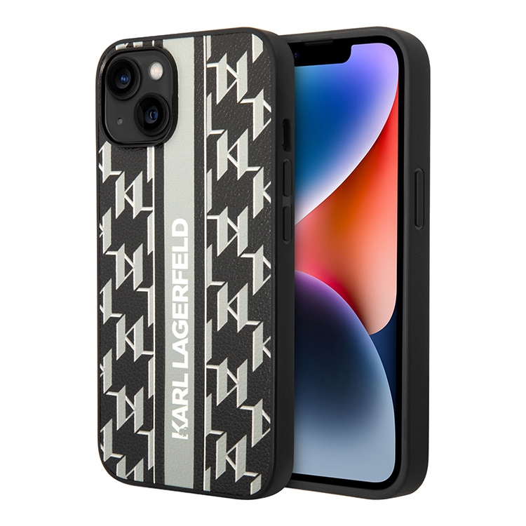 Чехол Lagerfeld PU Monogram w Vertical logo Hard для iPhone 14, серый