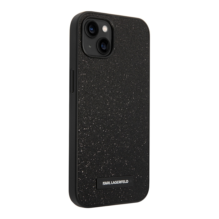 Чехол Lagerfeld Solid glitter Plaque logo Hard для iPhone 14, черный