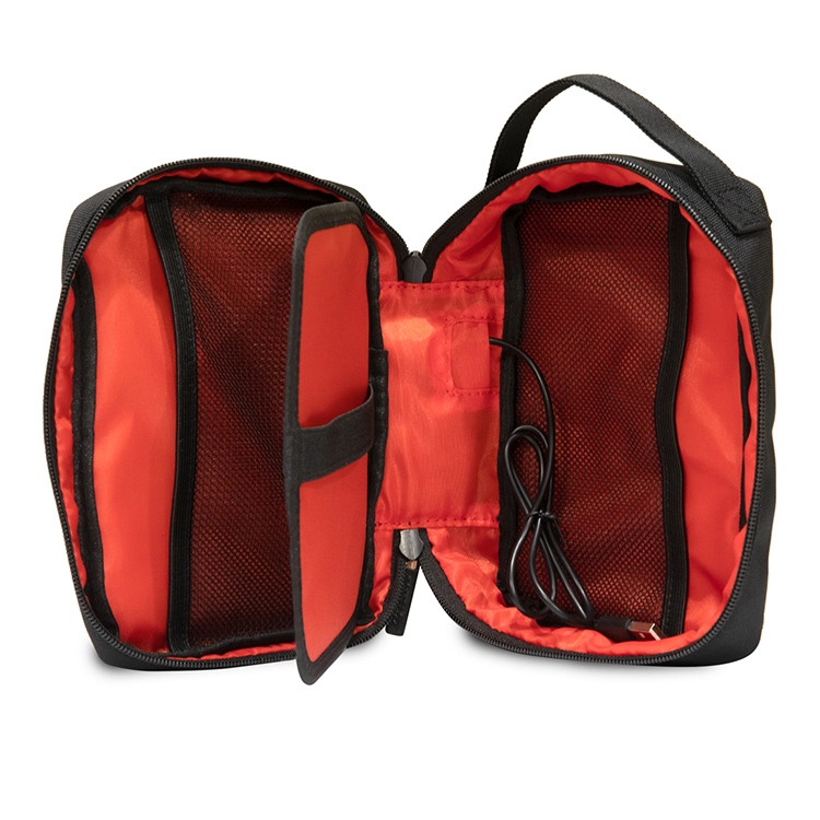 Сумка для телефона на руку, из нейлона, на молнии, с ручкой. Внутри коннектор с кабелем USB-A для подключения батареи, снаружи выход USB-A для подключения кабеля, что позволяет заряжать телефон с закрытой сумкой. Внутри два сетчатых кармана и разделитель с резинкой. Декорировано металлическим логотипом, триколором и монограммой Scuderia Ferrari.