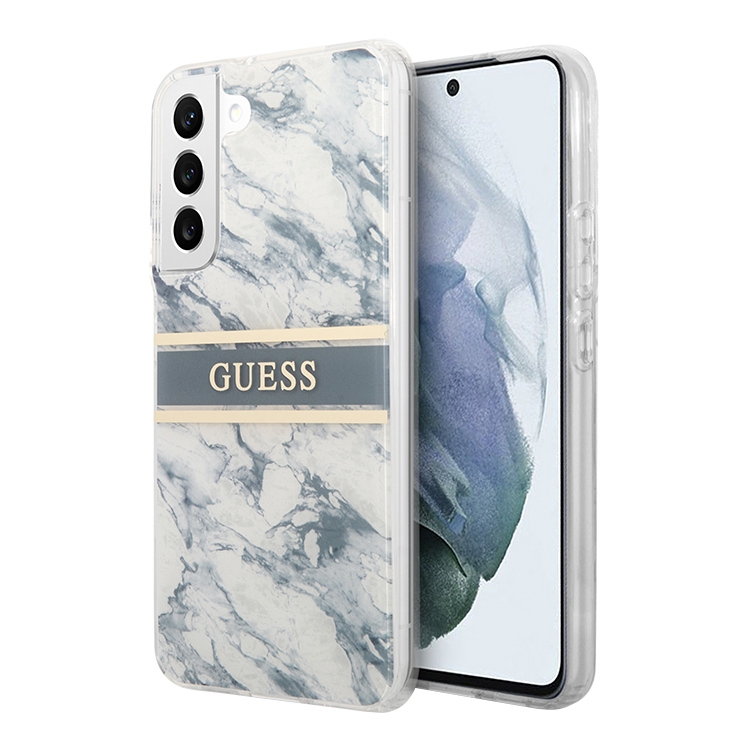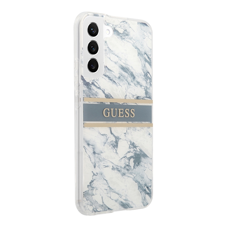 Чехол Guess Marble with Gold stripe Hard для Galaxy S22, синий