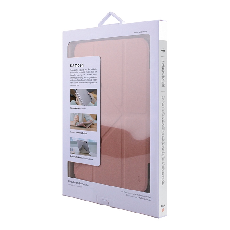 Чехол Uniq Camden Anti-microbial для iPad mini 7 (2024) / mini 6 (2021) с отсеком для стилуса, розовый