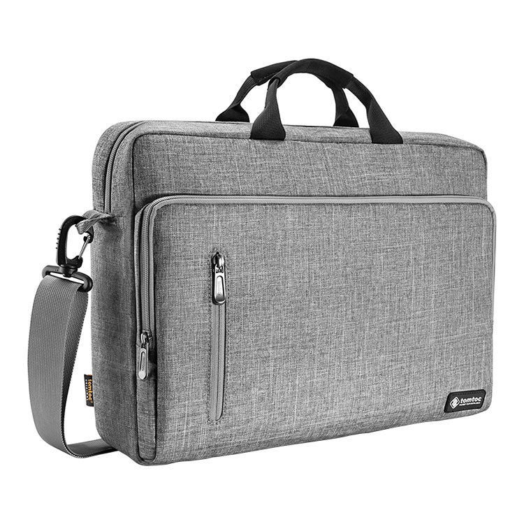 Стильная универсальная сумка Tomtoc Defender Laptop Briefcase A50 выполнена из прочных высококачественных материалов и обладает отличной вместительностью. Идеально подходит для MacBook Pro 14 или любого тонкого ноутбука с диагональю 13.5 дюймов. Размер внутренний (см): 32,3 x 22,8 x 1,9. Изготовлена из прочной водостойкой ткани типа Оксфорд, отлично защищает от внешних повреждений, загрязнений и пыли. Внутри портфеля - отсек на липучке, предназначенный для переноски и хранения ноутбука или планшета. Передний карман на молнии оснащен небольшими открытыми карманами, которые можно удобно использовать под такие аксессуары. Толстая внутренняя плюшевая подкладка в сочетании с усиленными краями обеспечивают защиту на 360° от любых потенциальных повреждений, вызванных случайным падением. Три способа переноски: полностью регулируемый съемный плечевой ремень и усиленные ручки с двойным захватом позволяют использовать аксессуар в качестве сумки через плечо, портфеля или просто прикрепить к чемодану.