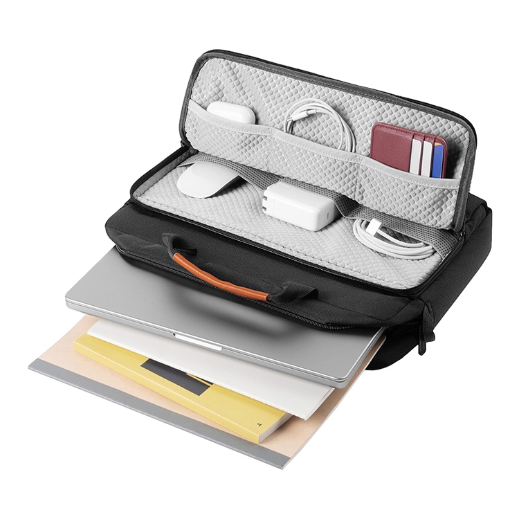 Стильная универсальная сумка Tomtoc Versatile Laptop Briefcase A50 выполнена из прочных высококачественных материалов и обладает отличной вместительностью. Идеально подходит для MacBook или любого ноутбука с диагональю 13.3-14.4 дюймов. Изготовлена из прочной водостойкой ткани, отлично защищает от внешних повреждений, загрязнений и пыли. Помимо основного отделения оснащена передним карманом на молнии с организованным пространством для аксессуаров и предметов первой необходимости. Толстая внутренняя плюшевая подкладка в сочетании с усиленными краями обеспечивают защиту на 360° от любых потенциальных повреждений, вызванных случайным падением. Три способа переноски: полностью регулируемый съемный плечевой ремень и усиленные ручки с двойным захватом позволяют использовать аксессуар в качестве сумки через плечо, портфеля или просто прикрепить к чемодану.