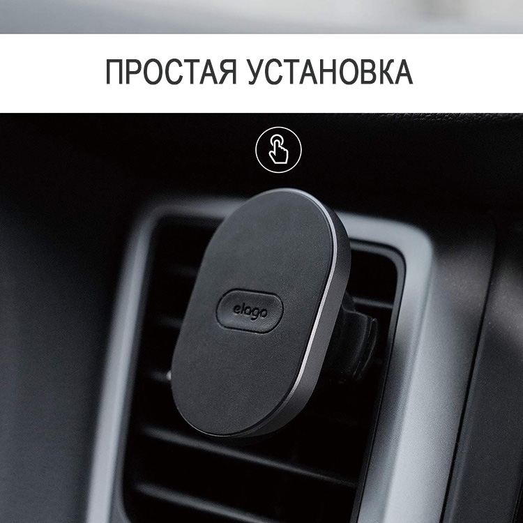 Компактный автомобильный держатель Elago предназначен для комфортного размещения вашего гаджета в автомобиле. Совместим с телефонами, навигаторами и другими устройствами независимо от размера дисплея. Выполнен из долговечных материалов - алюминия и пластика. Крепится на вентиляционную решетку с помощью прорезиненных лапок, не образующих царапин. Надежное удерживание устройства обеспечивают 6 мощных неодимовых магнитов на самом держателе и съемная металлическая пластина на устройстве. Шарнирная конструкция держателя позволяет вращать телефон на 360°, изменяя угол наклона (поворота) телефона так, как вам удобно. Держатель оснащен боковым зажимом для кабеля, позволяющим упорядочить провод и не отвлекаться для его подключения.