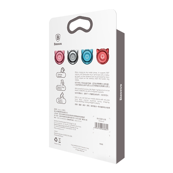 Кольцо держатель для телефона Baseus Cat Ear Ring Bracket — удобный и стильный аксессуар, который подходит для любых устройств с гладкой и ровной поверхностью. Позволяет расположить смартфон или планшет в удобном положении в руках, на столе или любой вертикальной поверхности. Выполнен из сплава цинка и имеет ультратонкий дизайн, стилизованный под мордочку кошки. Крепится на заднюю стенку смартфона с помощью безопасного клеевого покрытия, плотно прилегая к корпусу и не повреждая его. Удобная конструкция может вращать аксессуар на 360 градусов в одной плоскости и поворачивать на 180 градусов в другой. Встроенная в корпус стальная пластина дает возможность устанавливать смартфон с закрепленным кольцом в магнитный держатель.