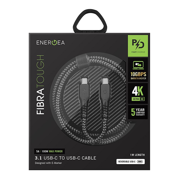 Кабель EnergEA FibraTough Type-C на Type-C 10-Gbps 5A (1 метр), черный