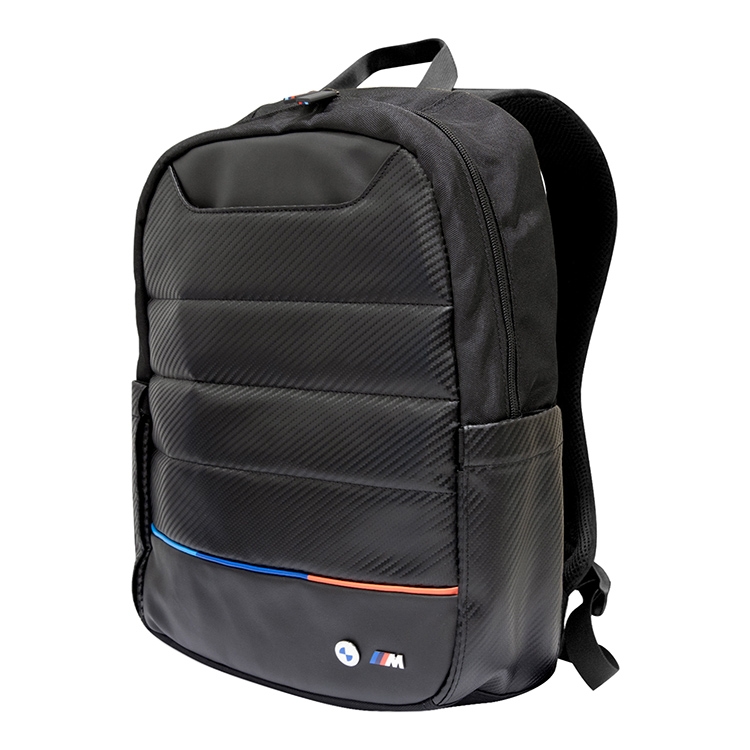 Универсальный рюкзак BMW надёжно защитит ноутбук с диагональю до 15.6 дюймов от ударов и повреждений. Изготовлен из прочного износостойкого синтетического материала и эко-кожи, имитирующей карбоновое волокно. Помимо основного отделения оснащен дополнительными карманами для документов и аксессуаров. Жёсткая спинка с хорошей вентиляцией и регулируемые наплечные ремни из дышащего материала обеспечивают легкое и удобное ношение.
