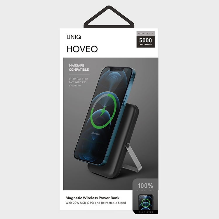 Uniq HOVEO - это портативный источник питания емкостью 5000 mAh и беспроводная док-станция с функцией MagSafe в одном корпусе. Оснащен универсальным USB-C разъемом со стандартом power delivery 20 Вт. Благодаря мощным магнитам АКБ надежно фиксируется на задней панели смартфона и гарантирует точное совмещение устройств для максимально быстрой зарядки. Встроенная система защиты убережет ваши гаджеты от скачков напряжения, короткого замыкания и перегрева. Выдвижная алюминиевая подставка обеспечит устойчивость телефона при просмотре фильмов или общении по видеосвязи. Ультракомпактный аккумулятор легко поместится в вашем кармане для включения питания в режиме "на ходу".