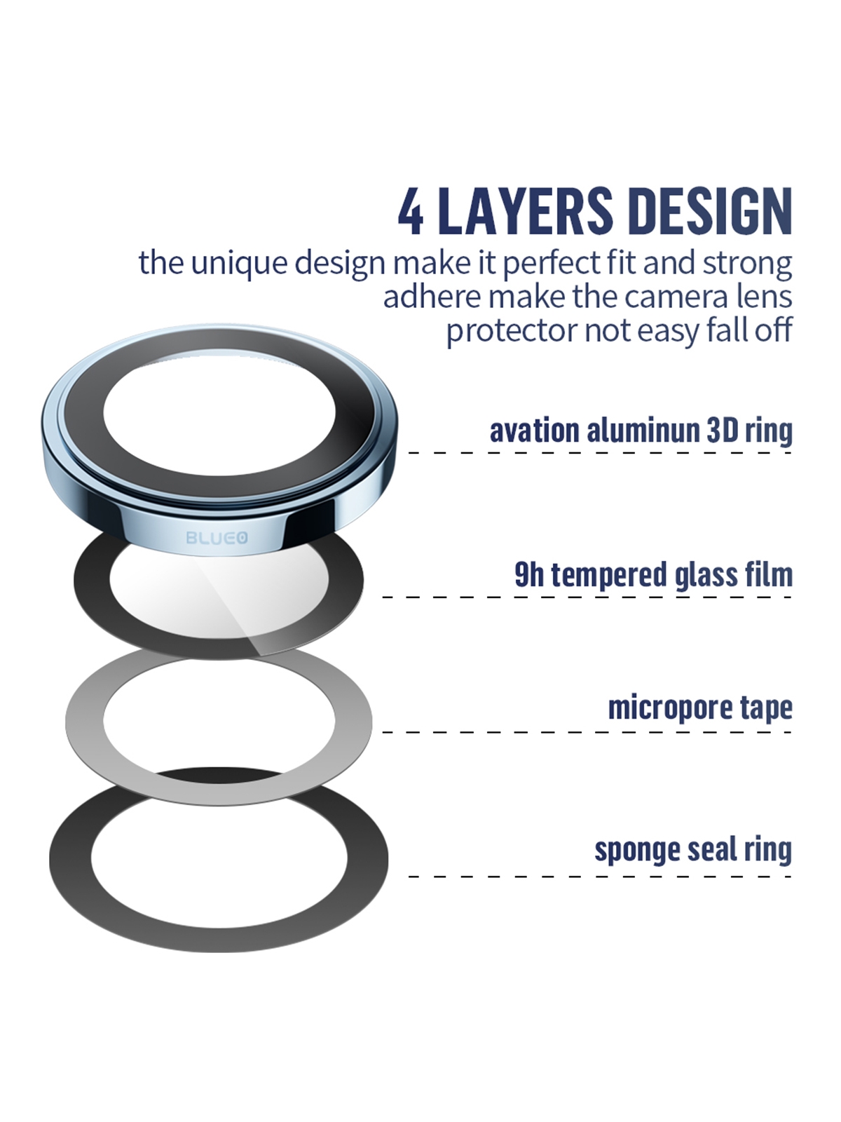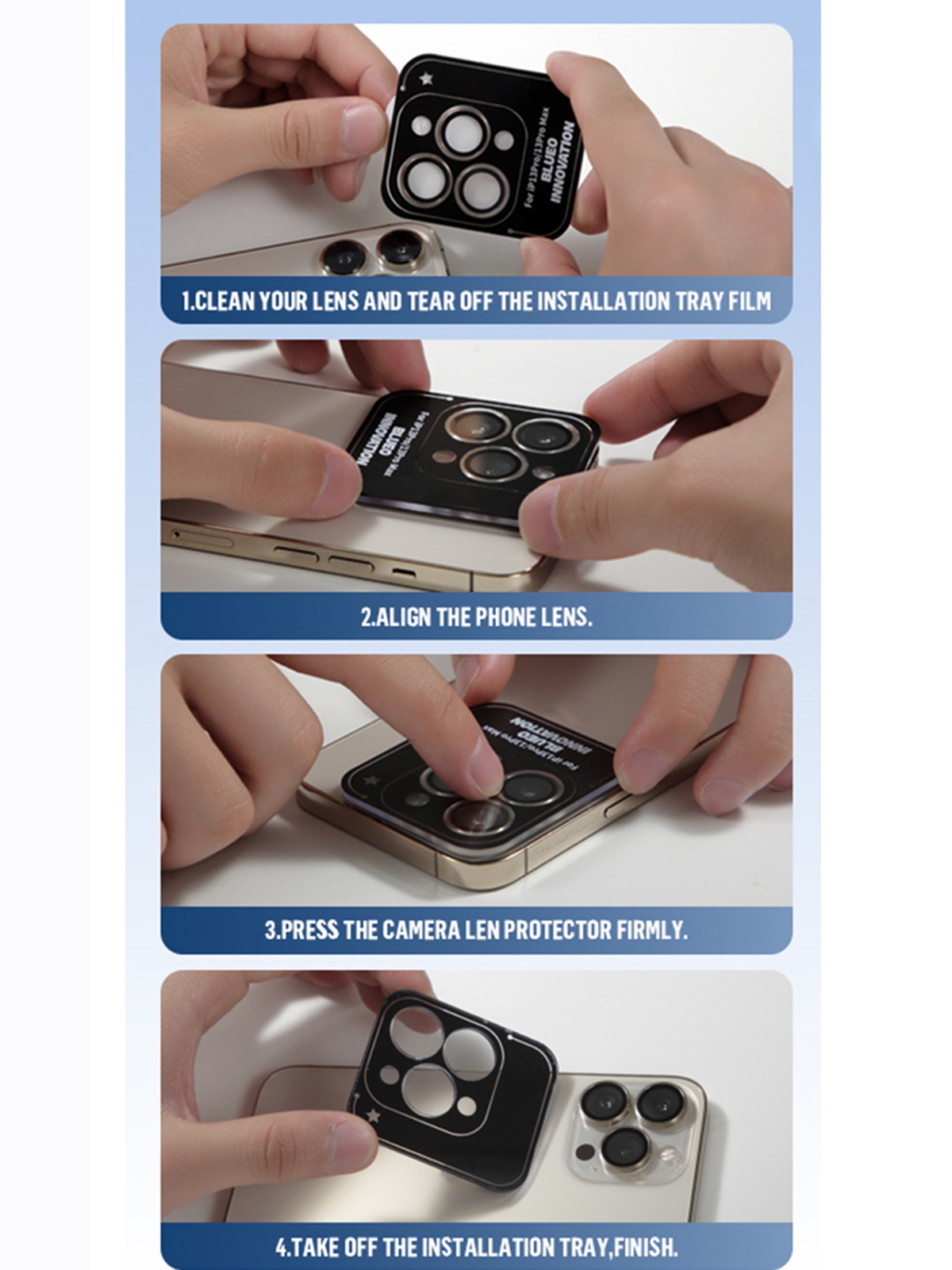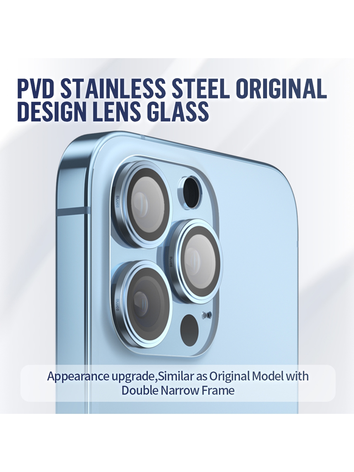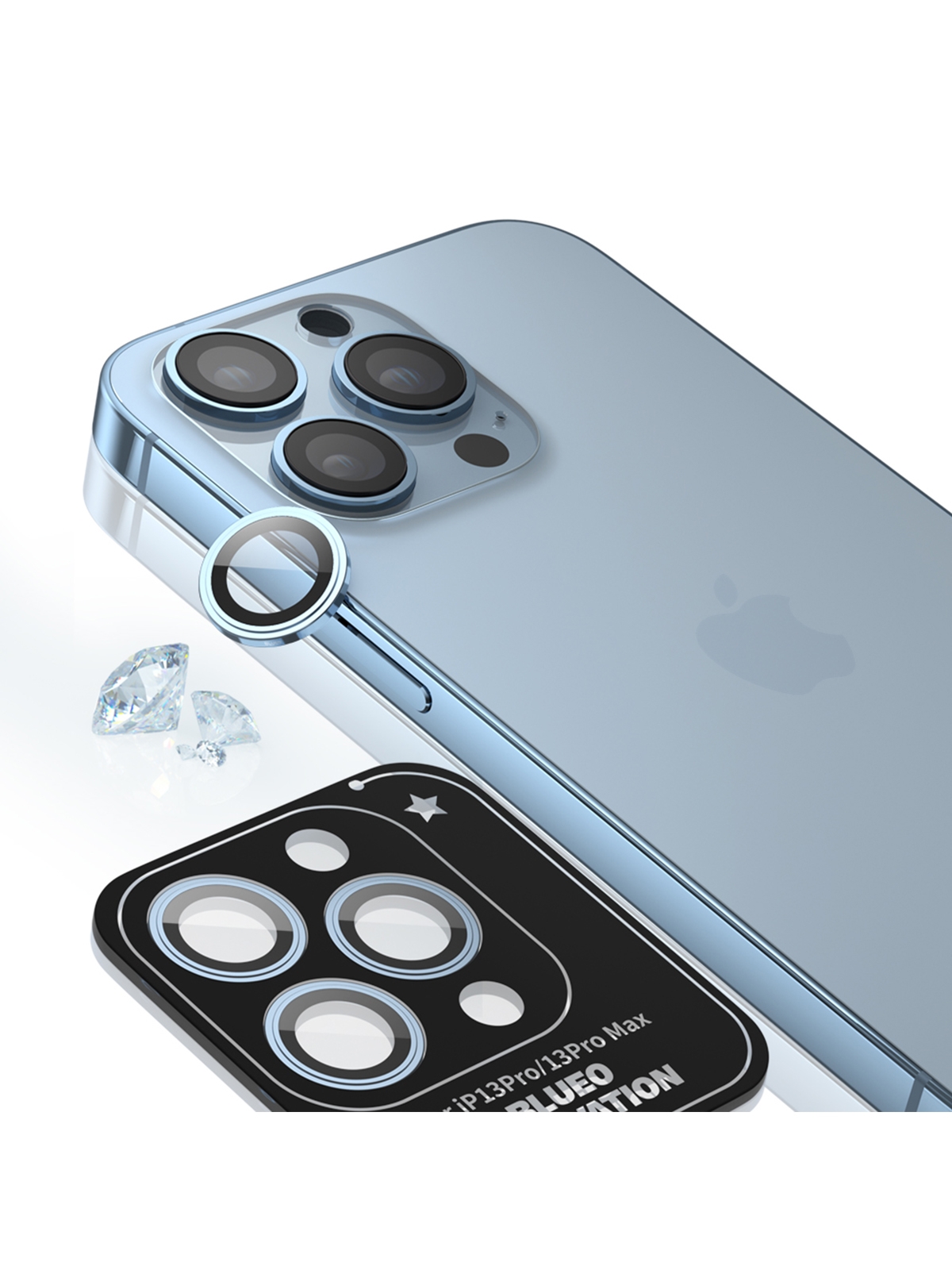 BLUEO Camera Lens PVD stainless steel для камеры iPhone 13 Pro | 13 Pro Max, Blue (3 шт +installer)